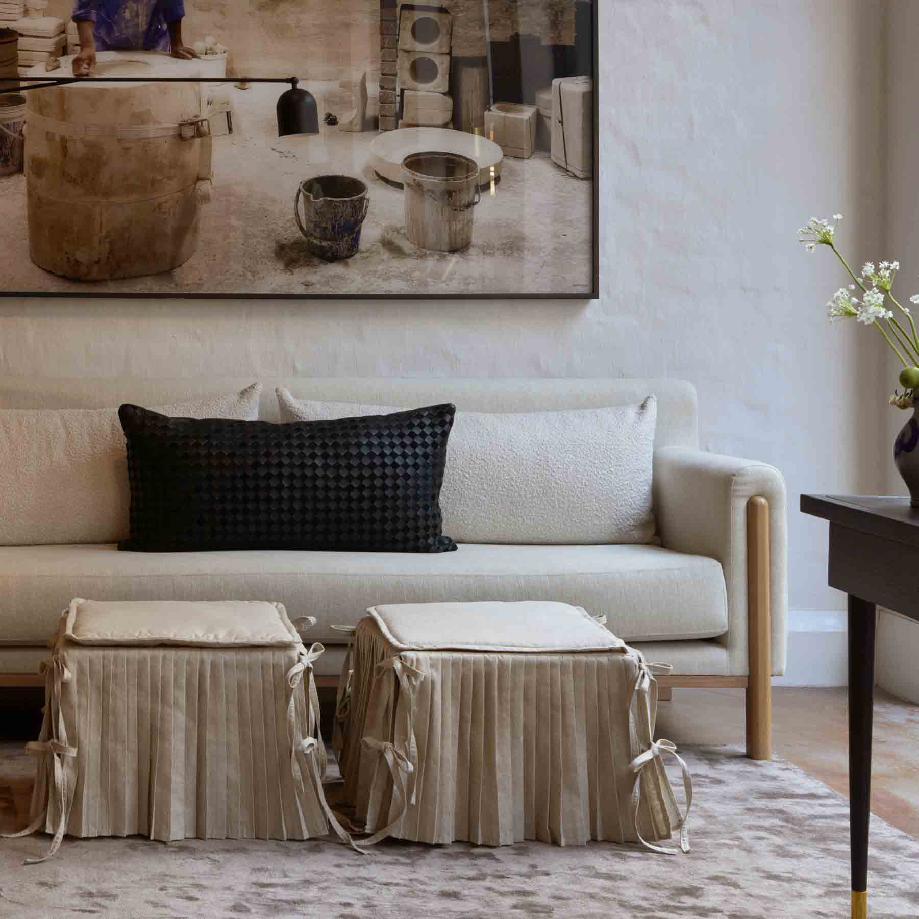 Visit our showroom to view our latest furniture launch and engage in a considered weaving experience on a portable loom, contributing to a bespoke wall hanging in the making—with participating guests standing a chance to win the completed piece.